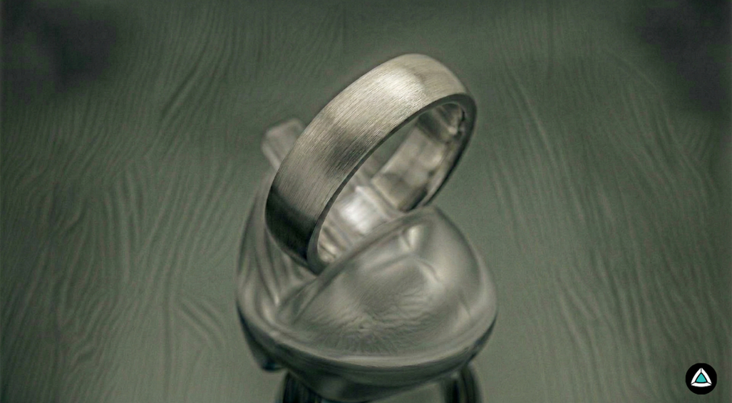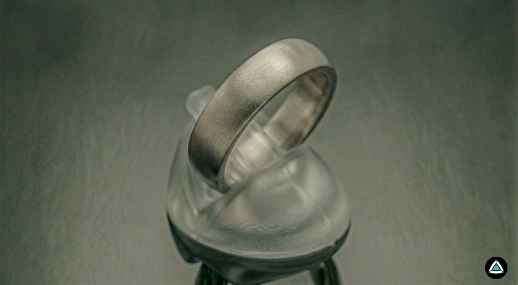 Finish with fine directional lines that reduce the mirror effect while maintaining a soft, elegant reflection. A subtle linear texture is visible under light.